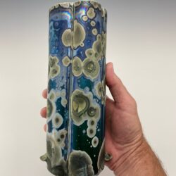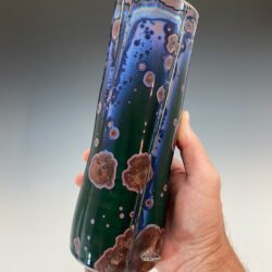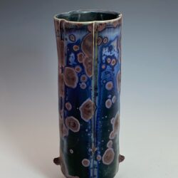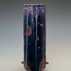 Dennis Swartzlander, of Blackland Ceramics, would say that his work is the counterpoint to a forty-year career in his family printing business. That process was geared towards accurate reproduction according to customer standards. With his bottles and vases, he allows for the opposite outcome. Swartzlander continually explores new forms, colors, finishes, and variations. Using simple forms allows for many possibilities as glazes interact with one another and move over the pieces in various