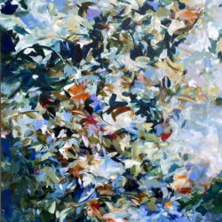 Morosky's abstract expressionist painting takes its creative impulse from the evolving natural environment. Frequently with an up-close perspective, her paintings develop from an abstract vocabulary inspired by the properties of water, fields, and their boundaries. Within Morosky’s compositions are searches for the essence of nature’s spontaneous and underlying forces. She begins with a robust foundation of strokes and color. Morosky paints simply. Rather than using sketches, her compositions are worked out on the surface of the canvas with layers continuously being reformulated. Morosky moves the paint with wet, dry, and scraping strokes to punctuate her work